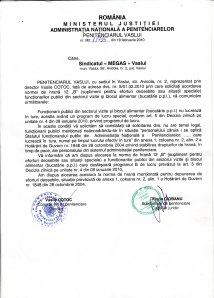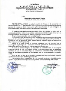 Deoarece directorul vostru sustine ca nu puteti reprezenta oamenii fara un mandat expres, va propun, plecand de la articolul 28 din Legea 54/2003 – Legea sindicatelor „Organizatiile sindicale apără drepturile membrilor lor, ce decurg din …. statutele functionarilor publici,….în fata …… a altor institutii …..ale statului (penitenciare)……………………fără a avea nevoie de un mandat expres din partea celor în cauză”