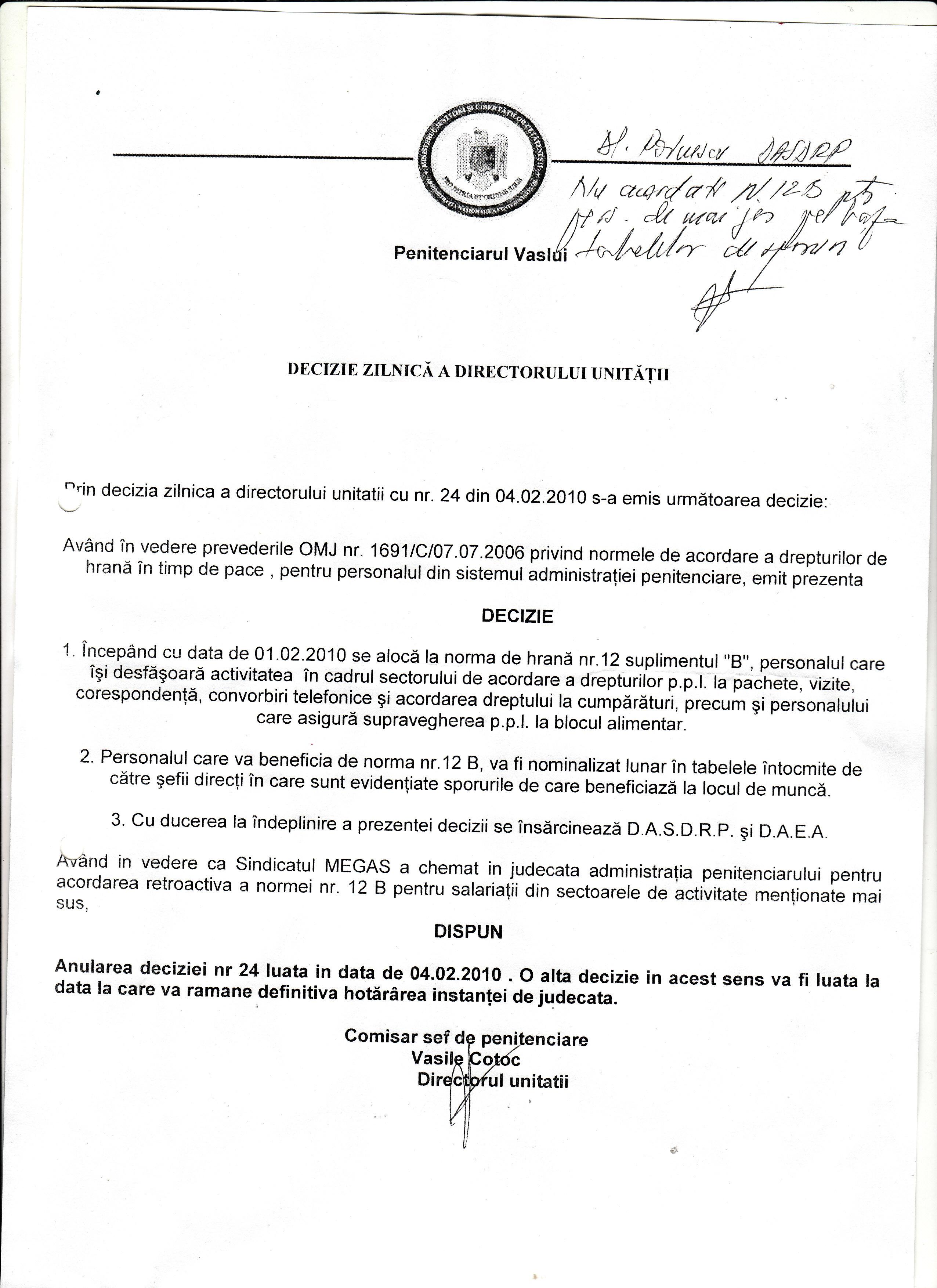 Am citit si eu chestiile astea. Eu unul am inteles urmatoarele (unde am inteles gresit, astept lamuriri suplimentare): materia mandatului este una riguros reglementata si cere documentare suplimentara celor care au nelamuriri; este anulat un ordin pt o contestare in instanta a acestuia, lucru normal din punct de vedere juridic; cu sporul nu am inteles-nu comentez.